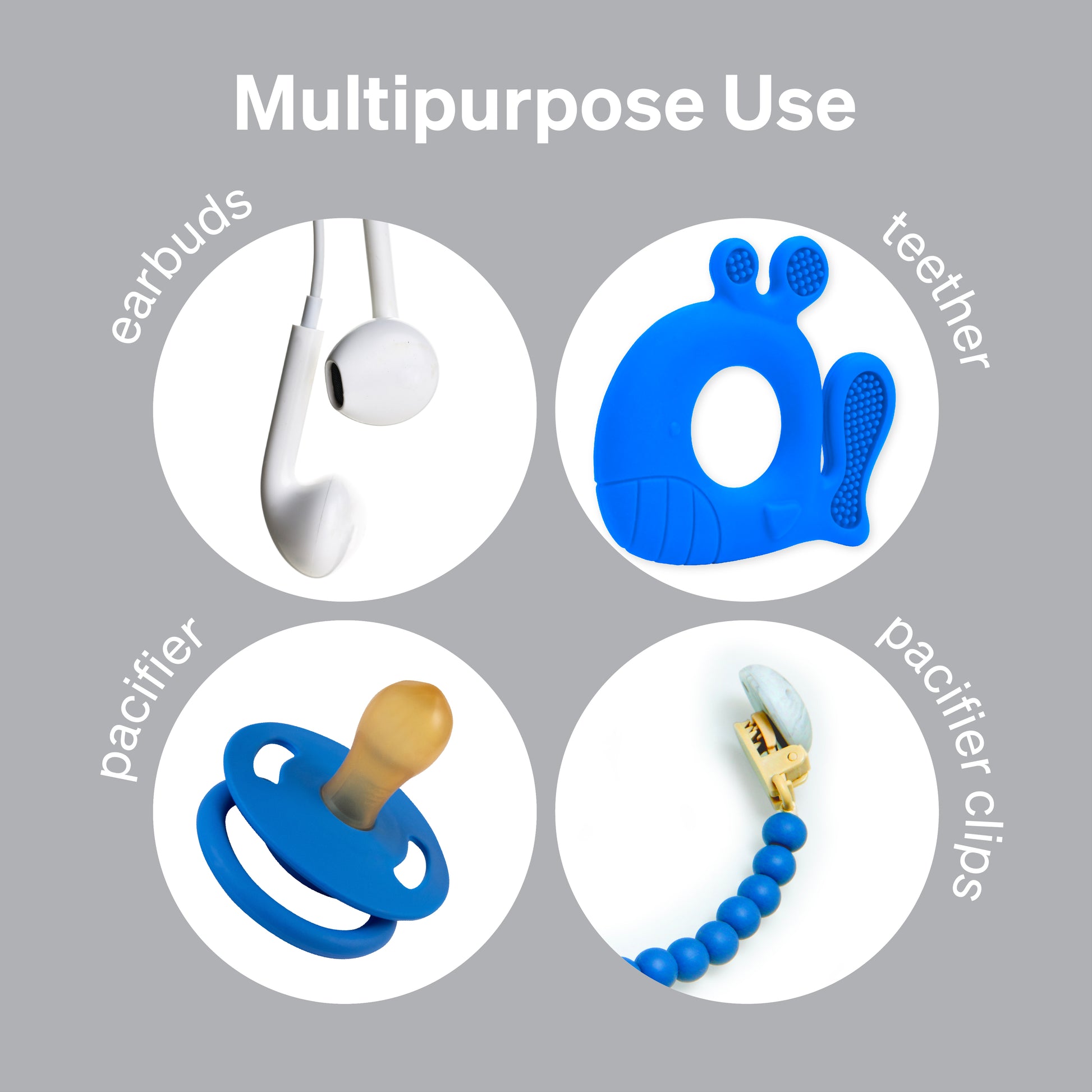- Multipurpose - fit 2 pacifiers at a time but also great to store teethers, pacifier clips, pacifiers, earbuds and many other products.